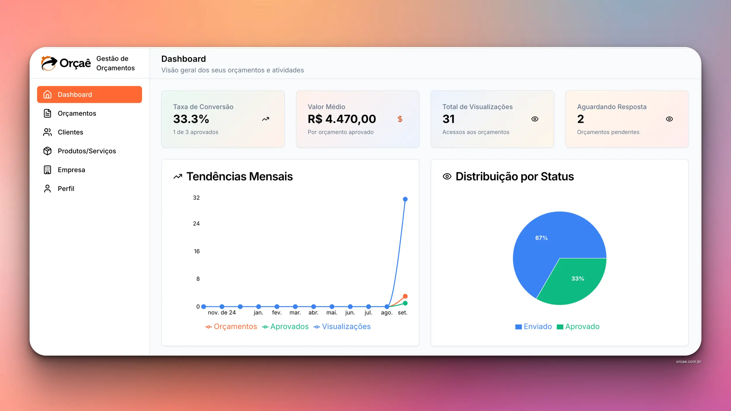 O Orçaê é para quem quer criar orçamentos rápidos, profissionais e aprovados por link ou PDF.